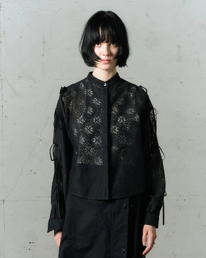 【WIZZARD (ウィザード)】LACE TIE-SLEEVE SHIRT(ブラック、ホワイト)