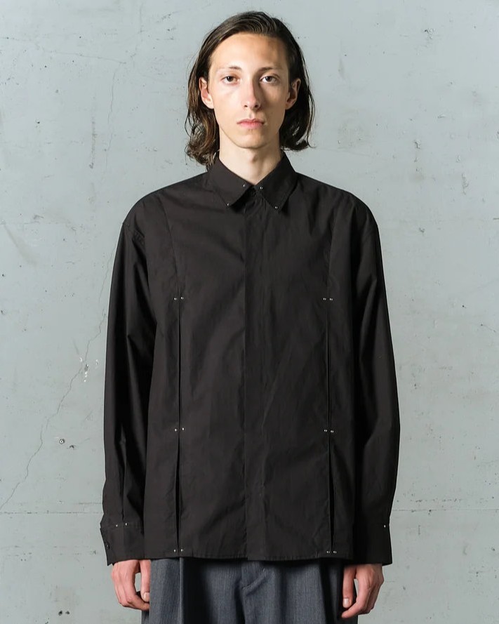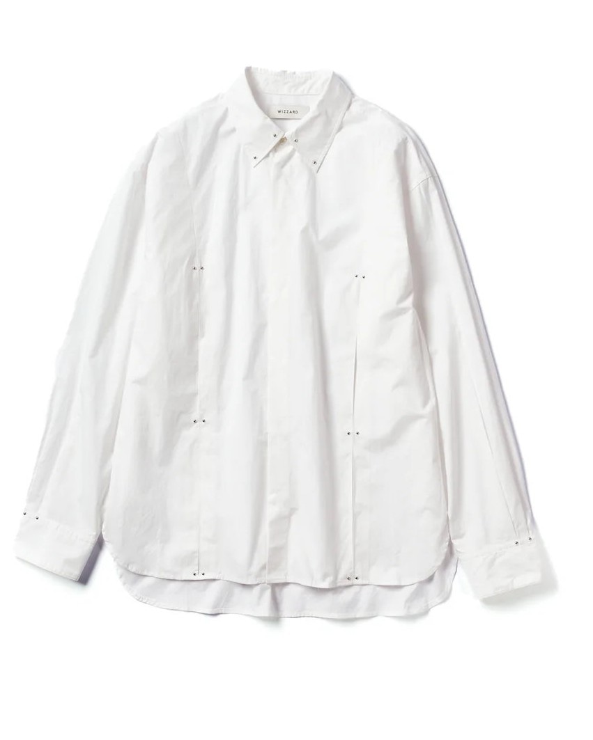 【WIZZARD (ウィザード)STUDDED MOTION PLEAT BROAD SHIRT (ブラック、ホワイト)