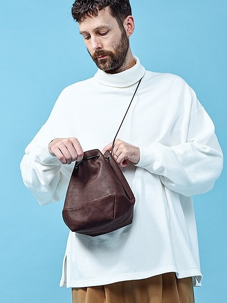 コードの調整で手持ちとショルダーの2WAY仕様になる巾着。
