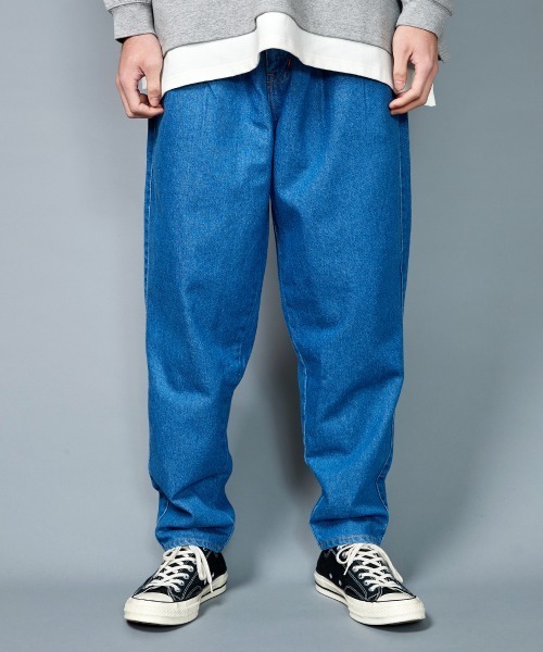 程よい厚みと張りで幅広いシーズンに対応出来る12ozのデニム生地を使用したデニムパンツ。