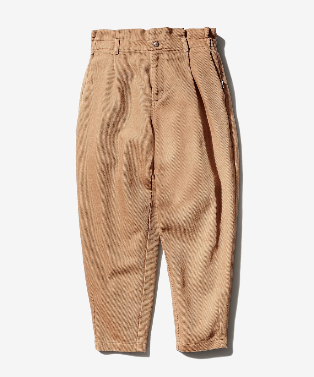 シルエットはタックインスタイルにも対応できるようウエスト部分を高く、股上を深くし、もも周りから裾に向かってテーパードを効かせることでスッキリとした印象を与えてくれます。