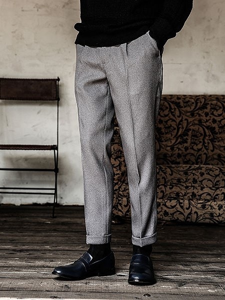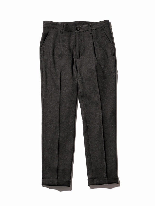 型はワンタックでヒップ周りにややゆとりがあり、膝から裾にかけての細めのテーパードシルエット。