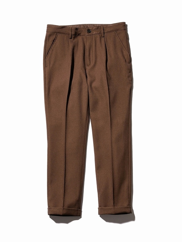 型はワンタックでヒップ周りにややゆとりがあり、膝から裾にかけての細めのテーパードシルエット。