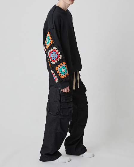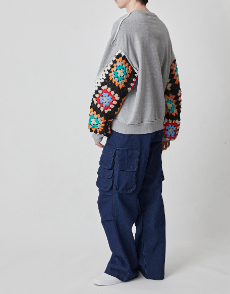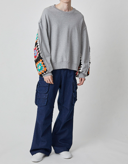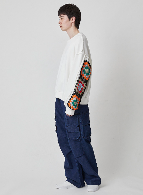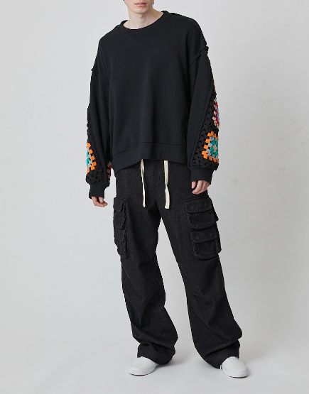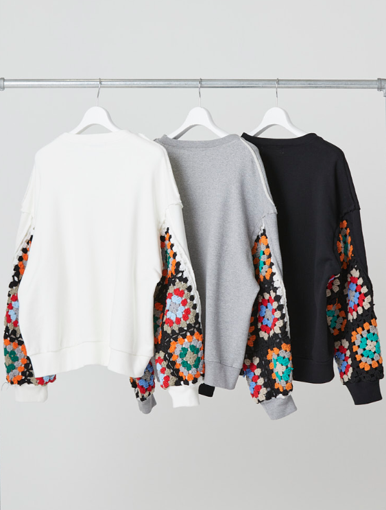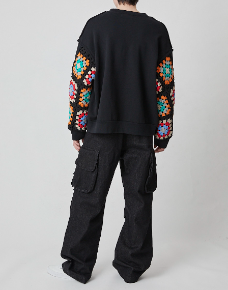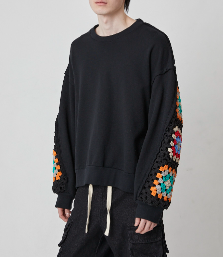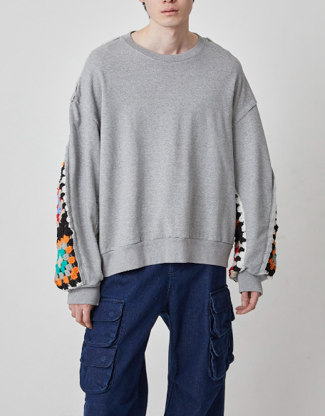 CROCHET SLEEVE SWEAT(2色)(DC-AW24-CU-01)