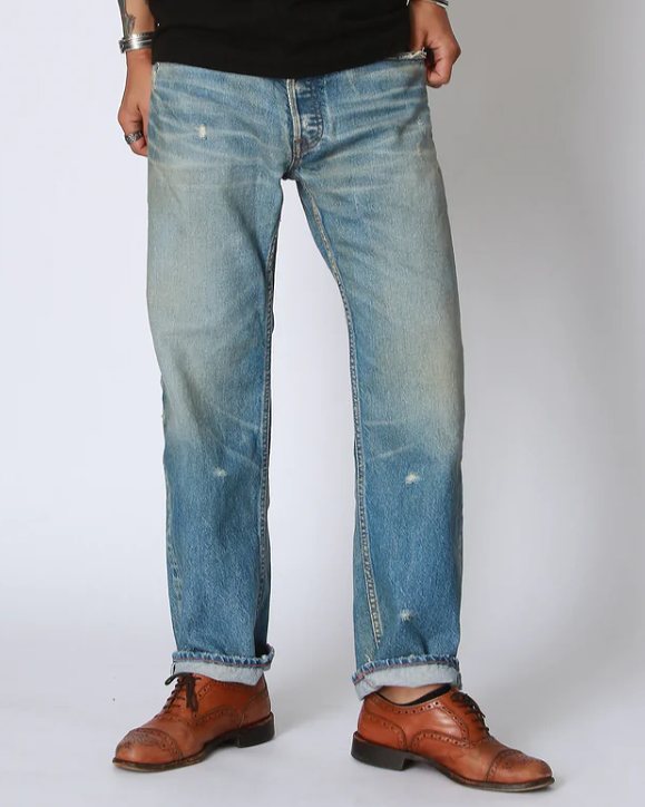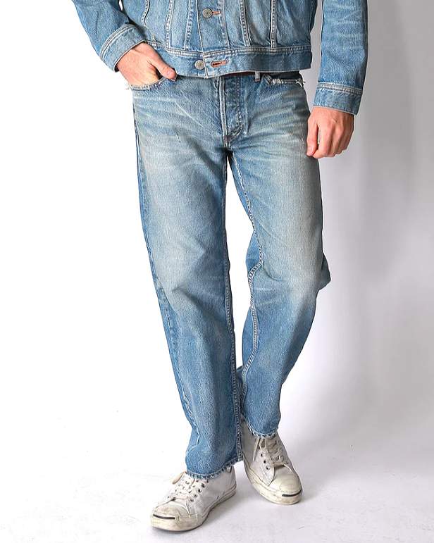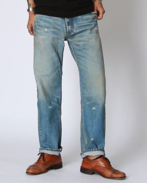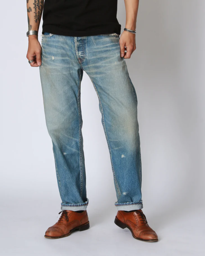 染色には、古着の501のような白け感のあるどことなく懐かしさを漂わせることでヴィンテージデニムのような印象に仕上げています。