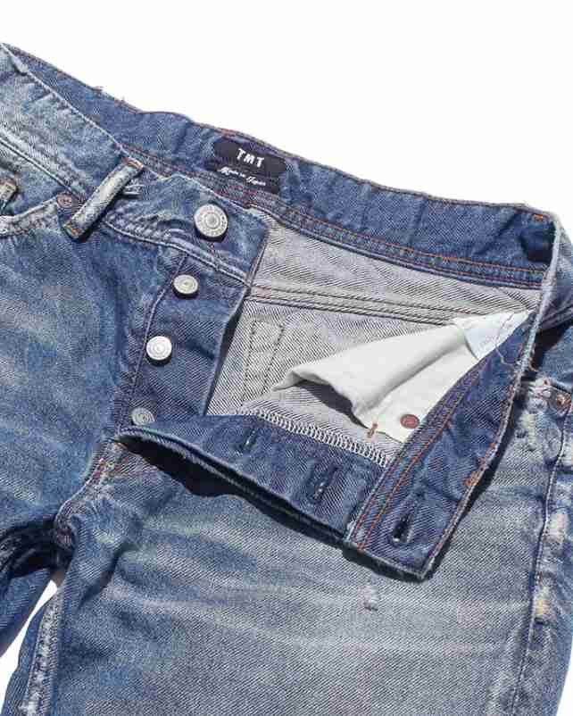 シルエットは、TMTでは新しいややルーズなストレートシルエットで裾直し不要の程良い長さのジャストレングス仕様。