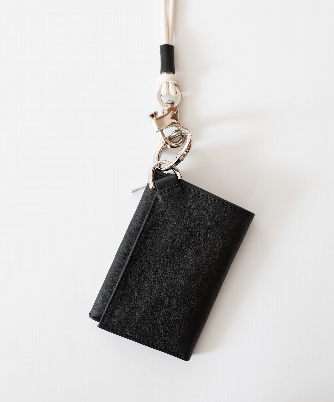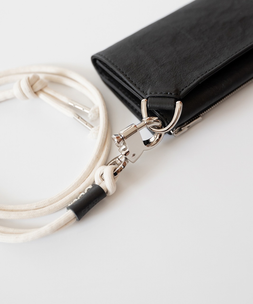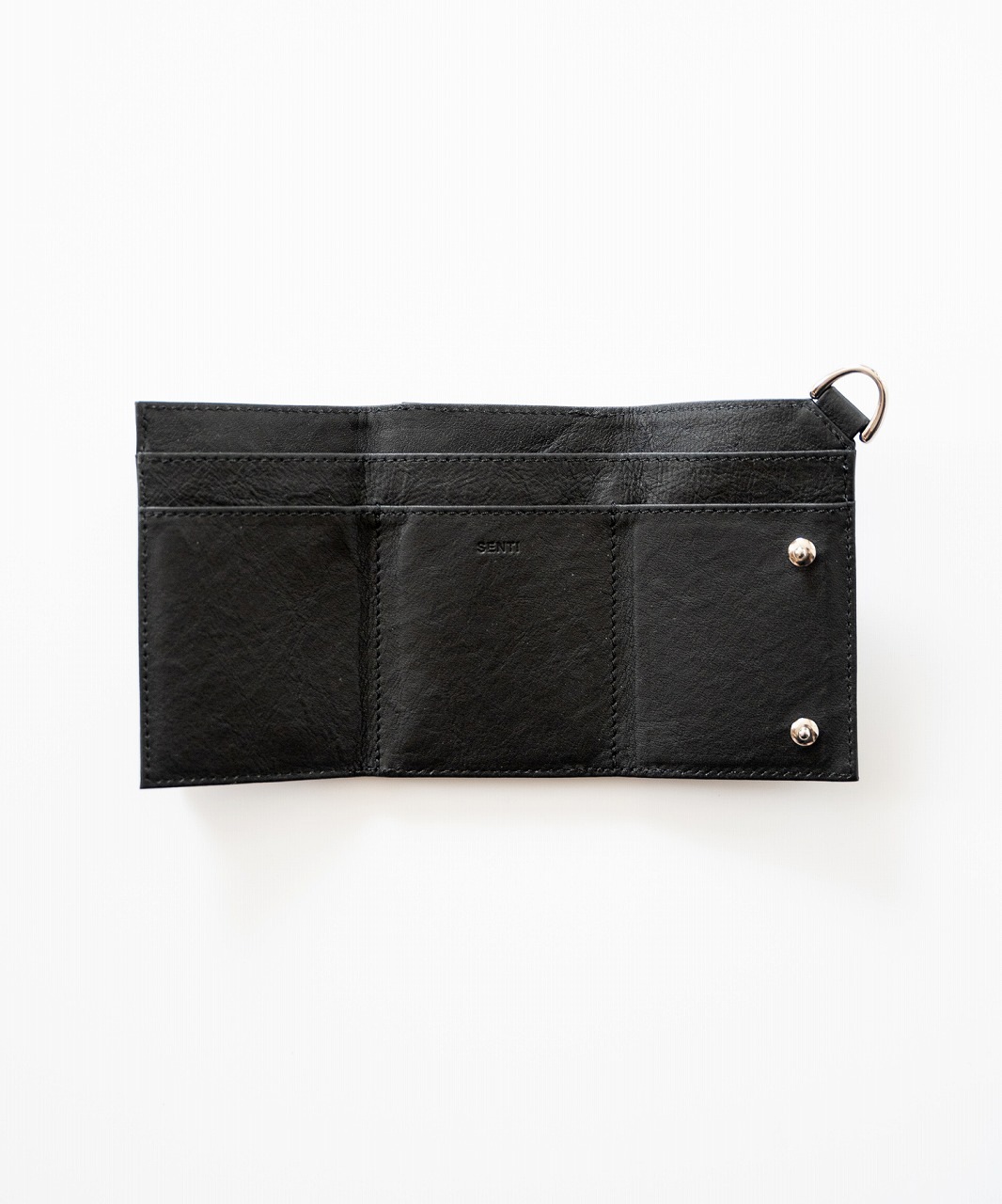 内側にカードポケット、札入れ、折りたたんだ外側には コイン用のジップポケットを配しています。