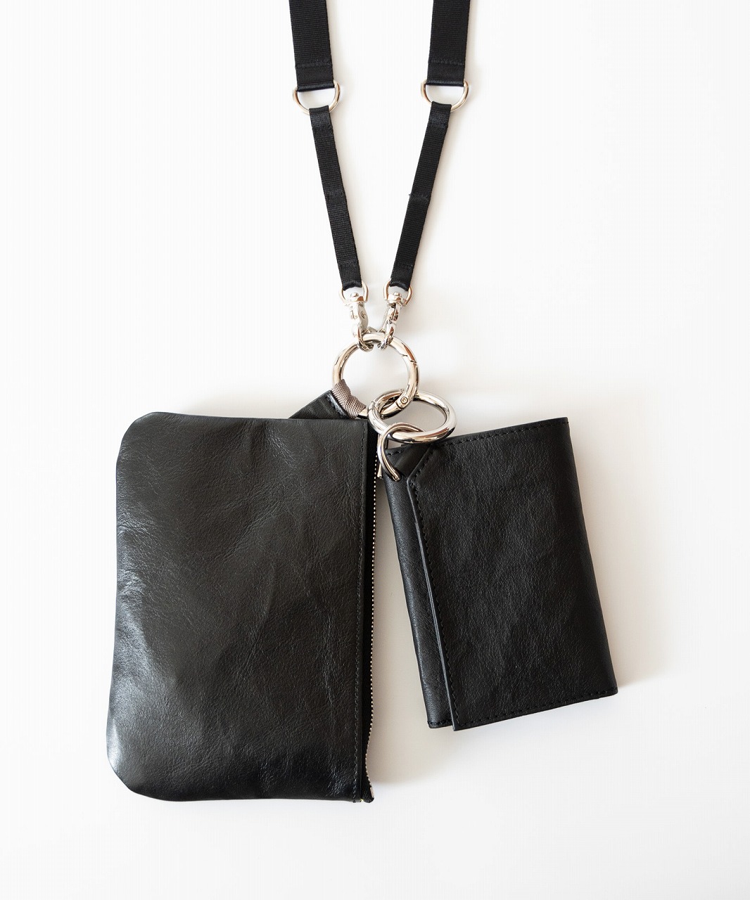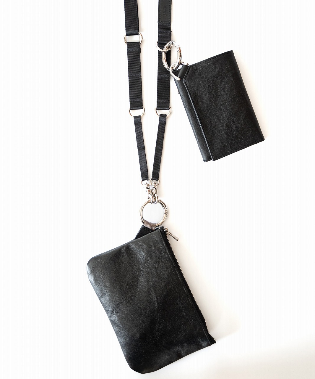 リングのカナビラを備えることで単独でも他のバックに付けたり ベルトループなどを利用して身に着けることも可能。