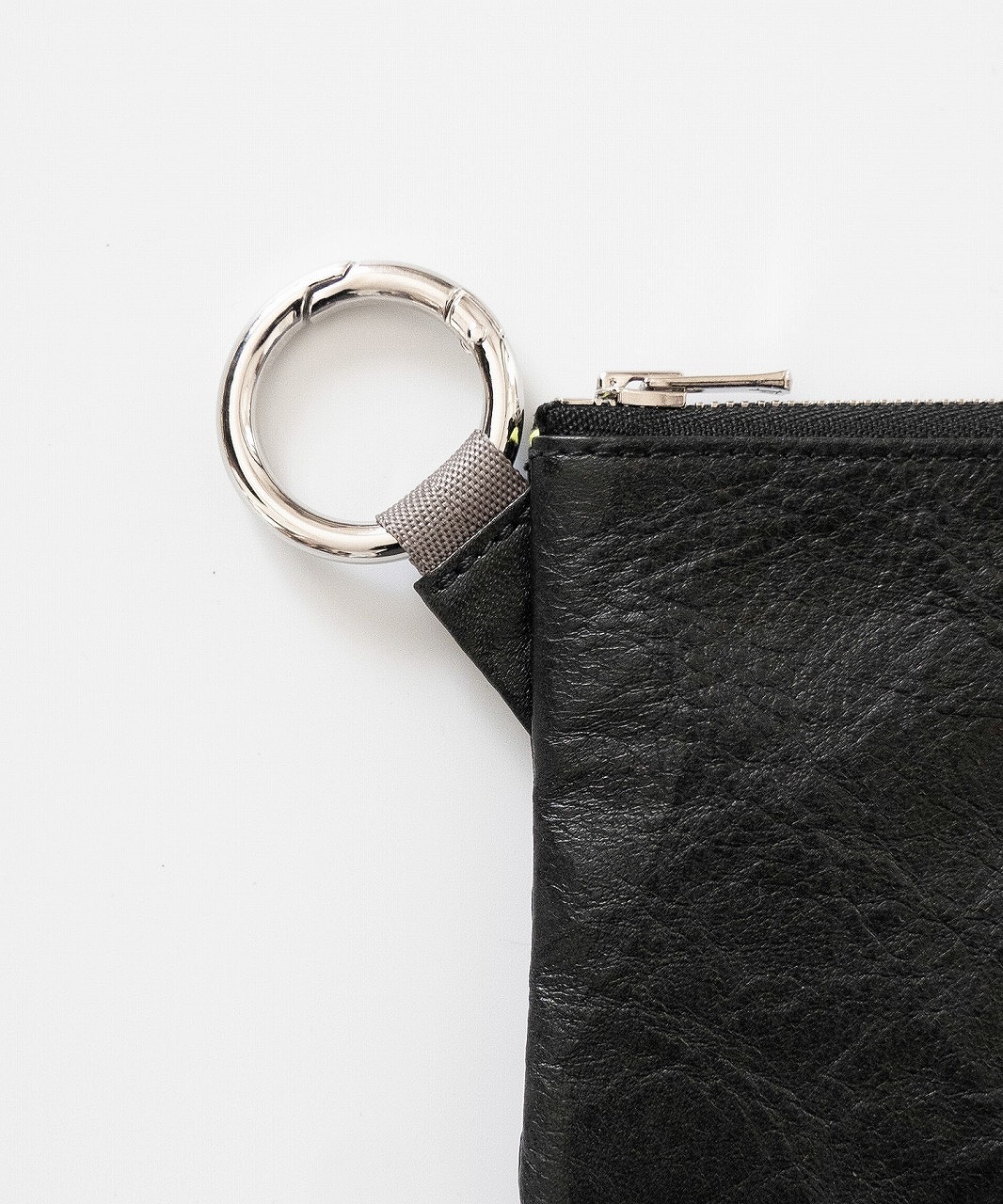 リングのカナビラを備えることで単独でも他のバックに付けたり ベルトループなどを利用して身に着けることも可能。