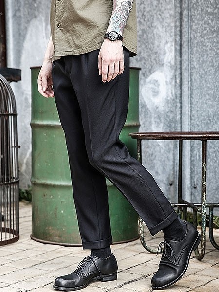 センタープレス入りで裾はダブ上げ仕様。