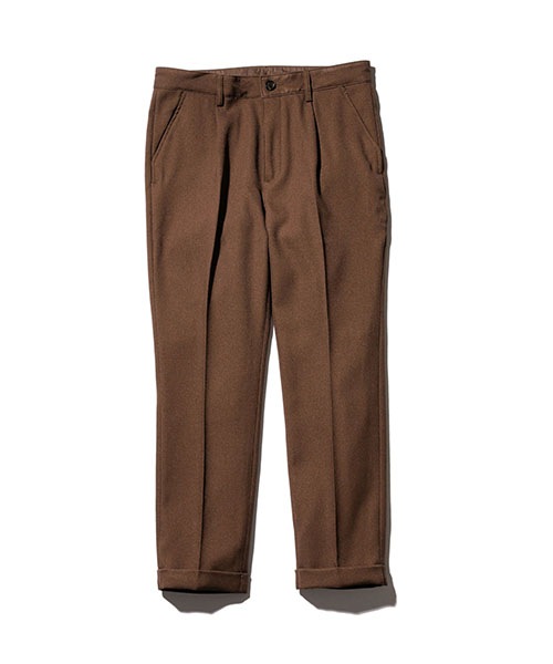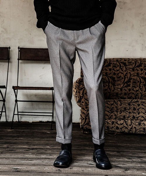 型はワンタックでヒップ周りにややゆとりがあり、膝から裾にかけての細めのテーパードシルエット。