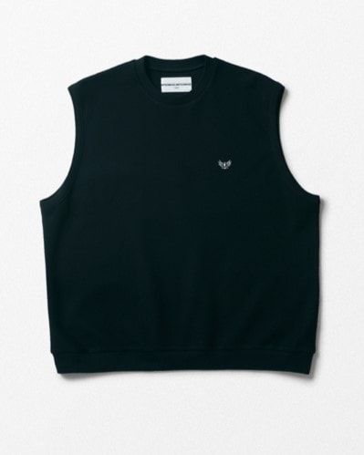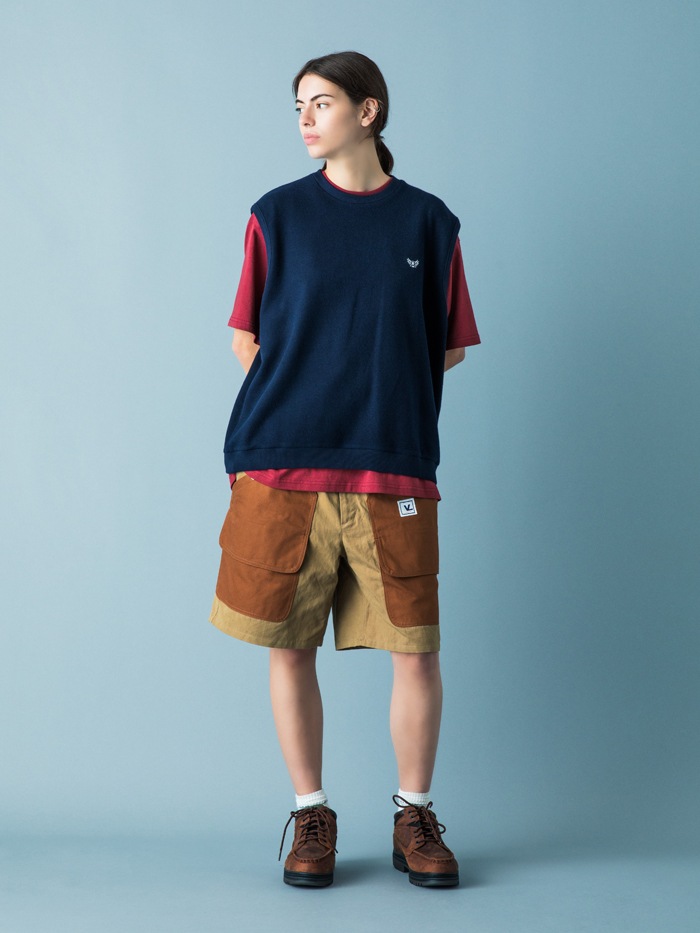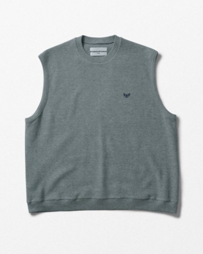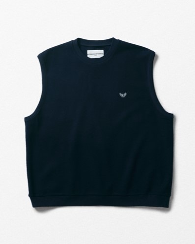 ■ワンポイント刺しゅうのコットンベスト。編み変化による生地面の表情が特徴的なコットン100%のカットソー生地を使用。
