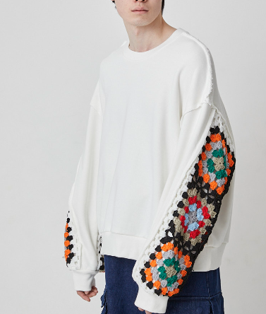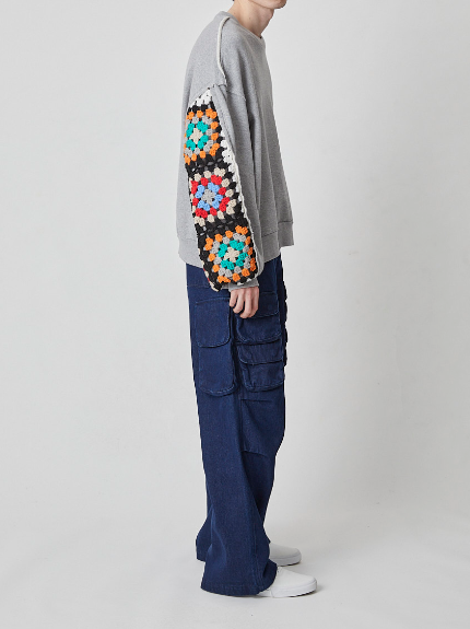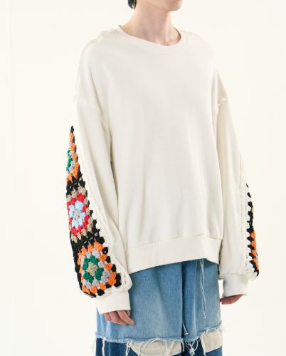 CROCHET SLEEVE SWEAT(2色)(DC-AW24-CU-01)