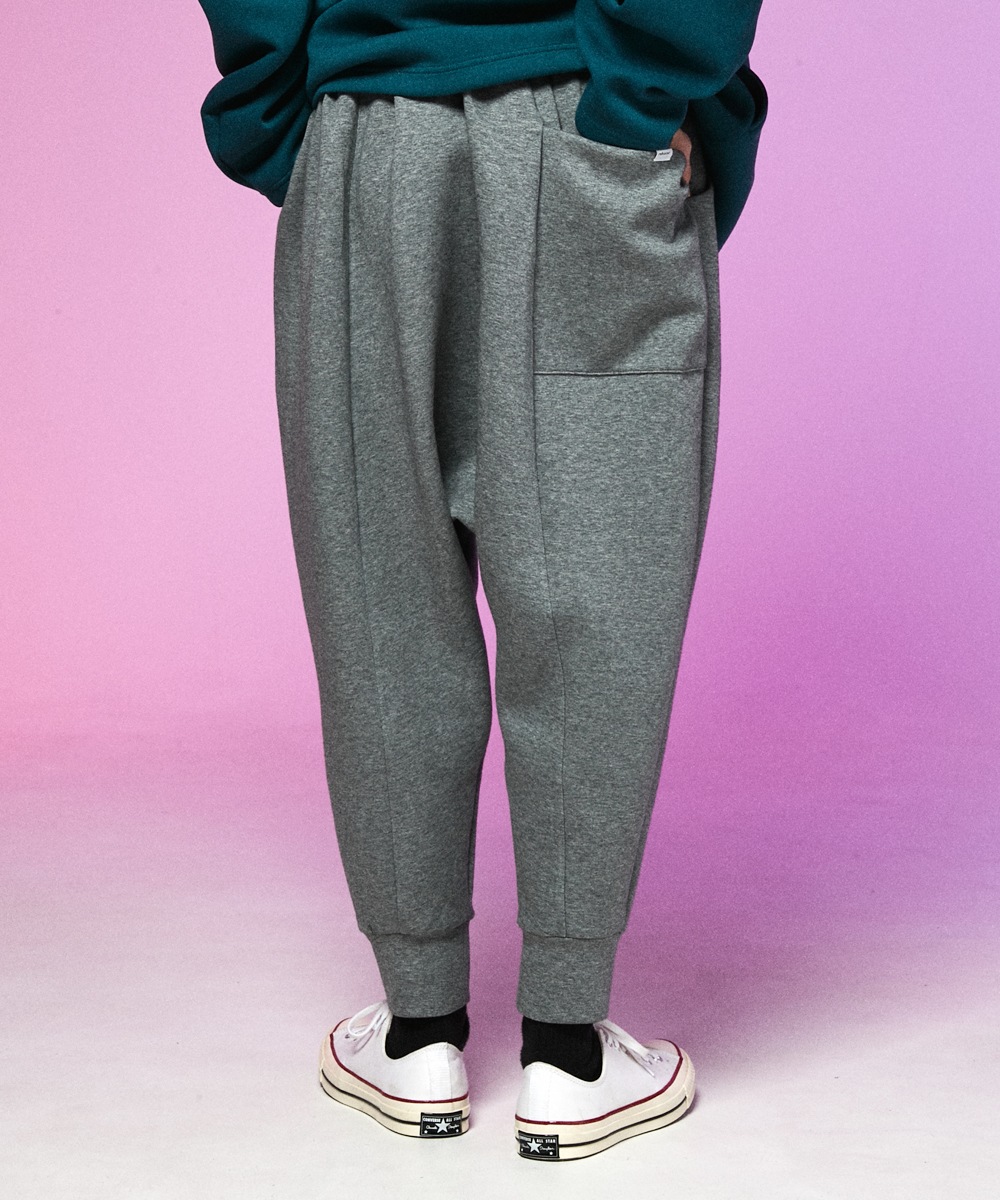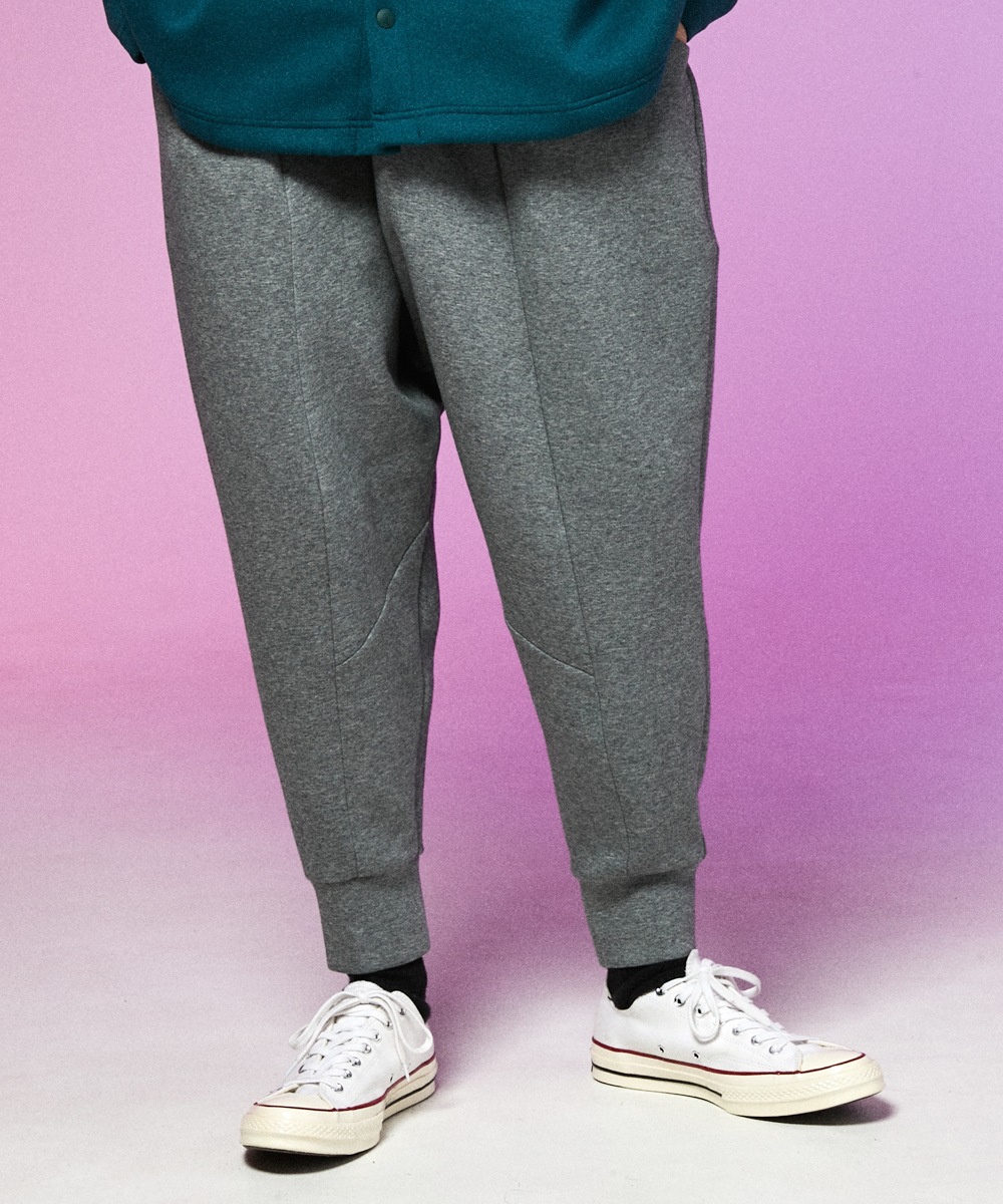打ち込みが良く、ふっくらとした3段スムースジャージ素材のイージーワイドパンツ。
