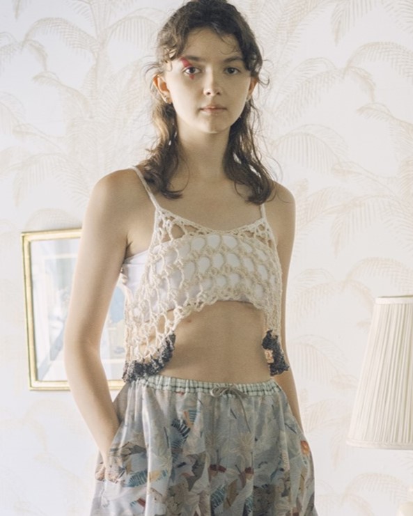 コットンリリーヤーンで、一糸一糸編まれた華奢なビスチェです。