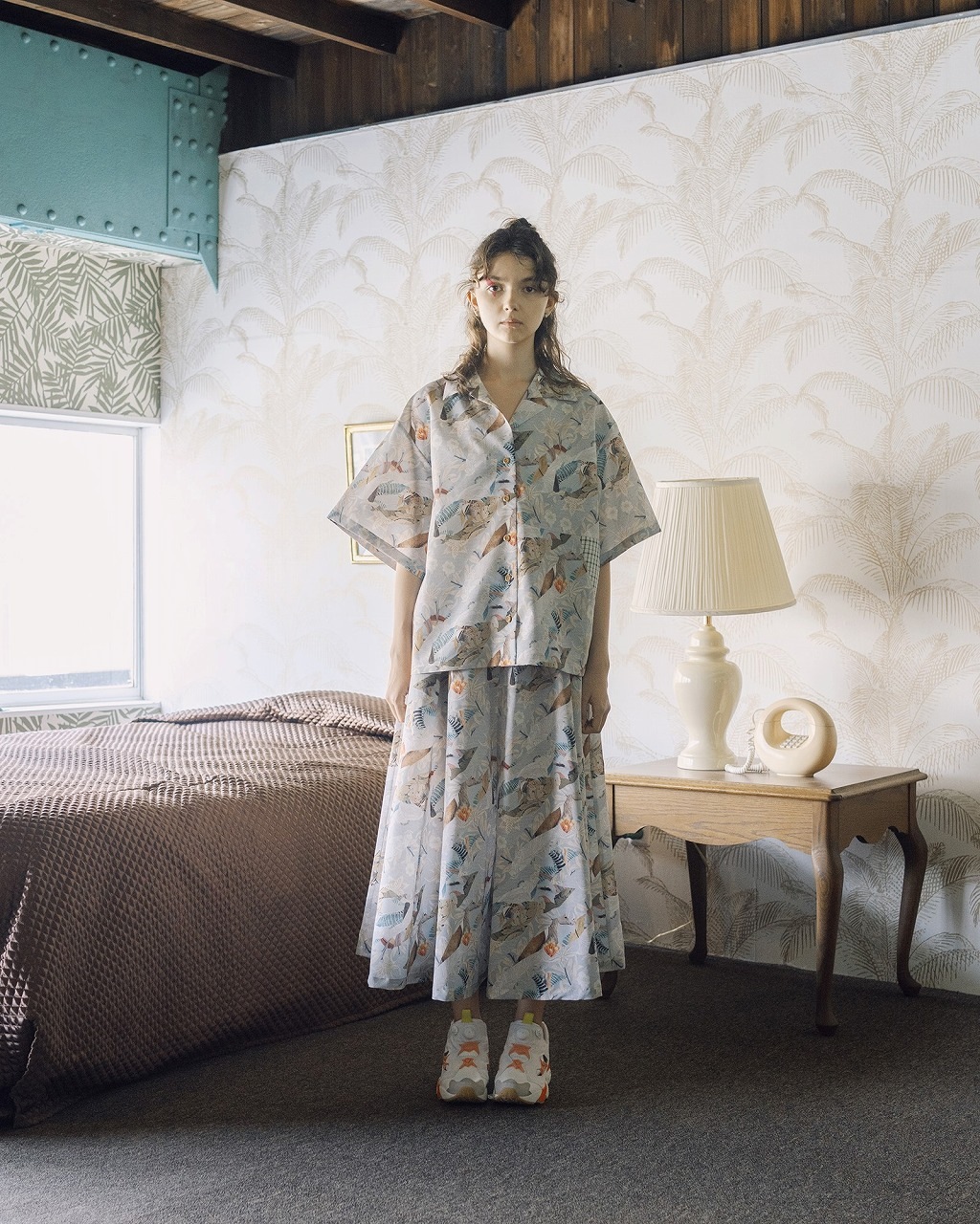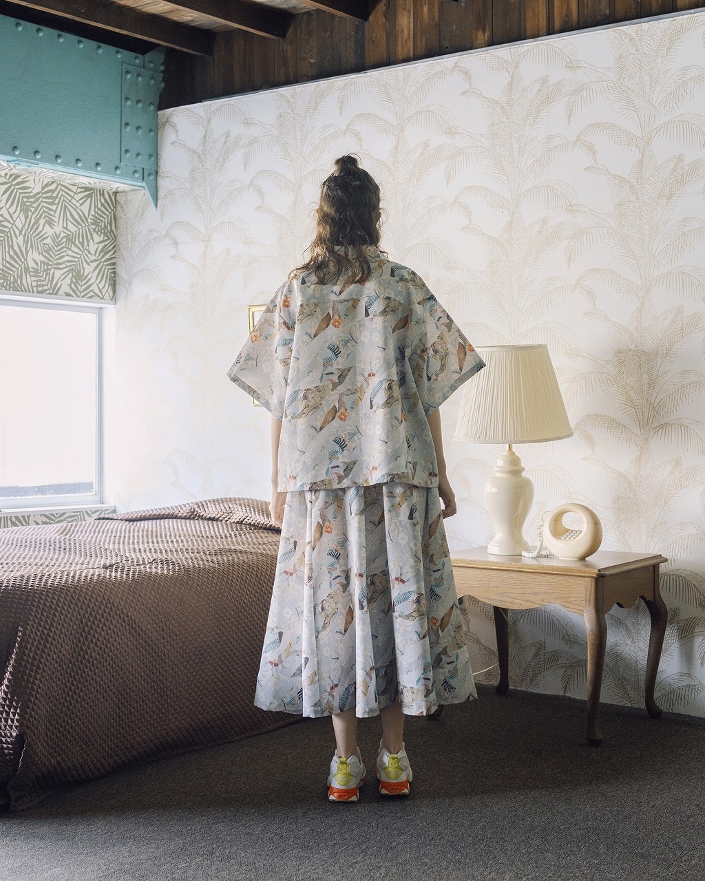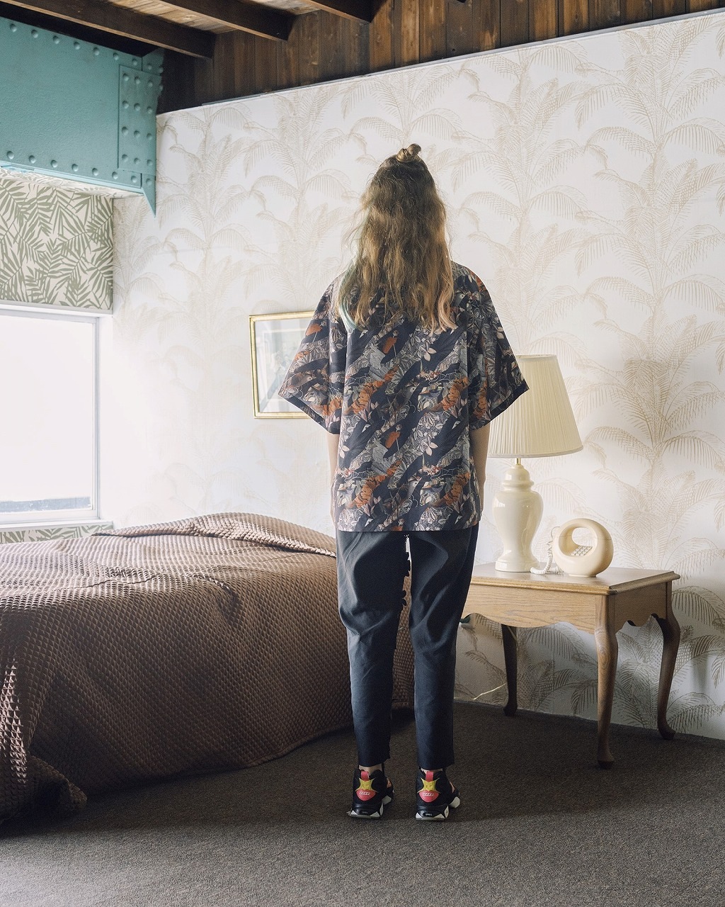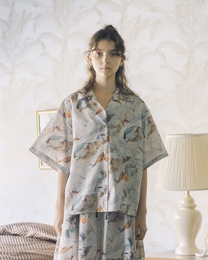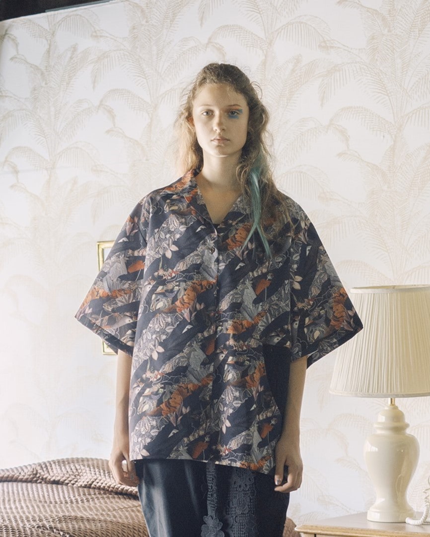 アーツ&クラフツをイメージして再構築したオリジナルプリントの生地を使ったリラックス感あふれるアロハシャツ。