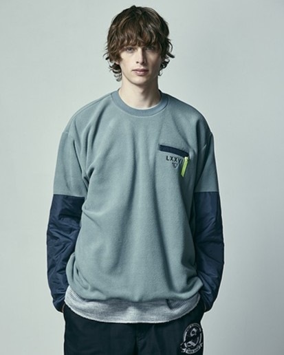 リサイクルポリエステル原料を使用した両面起毛のフリース素材で、秋冬に最適な一着です。