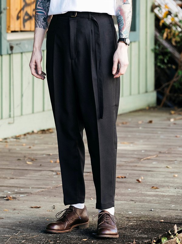 ワンタックでヒップや渡りにゆとりを持たせ、裾に向かってしっかりテーパードさせたシルエットのパンツ。