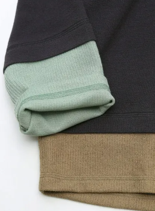 柔らかで肌触りのよいニットを使用し、レイヤード状にリブニットを組み合わせたニットソー。カットソー感覚でさらりと着用できます。