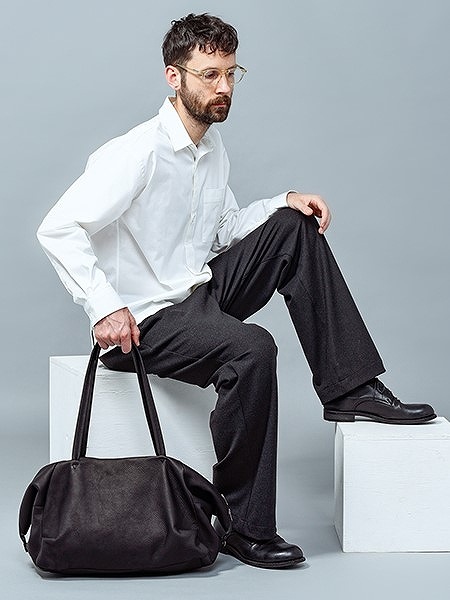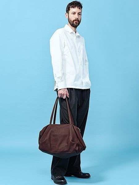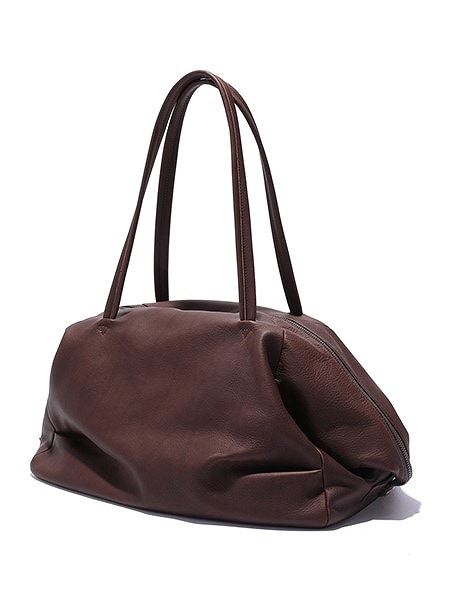 シンプルながら天の開閉仕様や底のタックなどを利用してドレープ感ある雰囲気に仕上げたボストンバック。