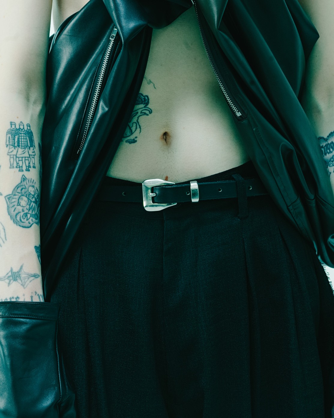 重厚感のあるバックルパーツと、ベルトのバタつきを抑えるスリットパーツがデザインのアクセントとなり、機能性と美しさを兼ね備えています。