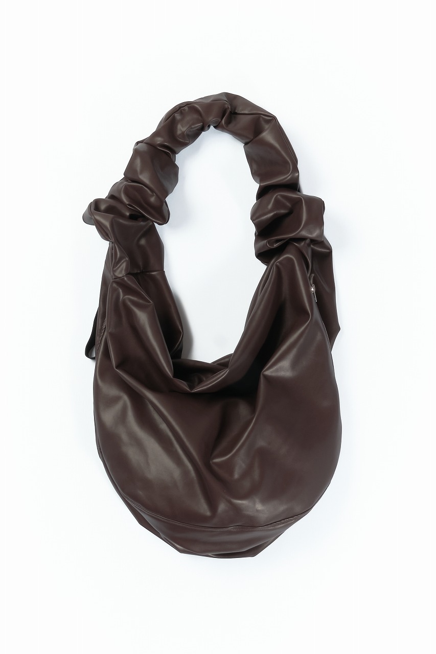 リアルな質感の高級フェイクレザーを使用したショルダーバッ グ。ショルダーベルトは長さ調節が可能で、縮めると波のように うねる独特の形状が特徴。メインポケットには小物を収納できる 内ポケットが1つ、外側には簡単にアクセスできるアウトポケット が1つ付属。