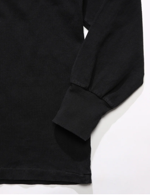 10OZのドライな生地を糸からオリジナルで作成し、少しルーズに着れるシルエットにしました。硫化染を使用し、ボディ全体を白けさせることで、ヴィンテージのような風合いい仕上がっています。肌はなれがよくしっかりした生地感ですが非常に着心地が良いです。