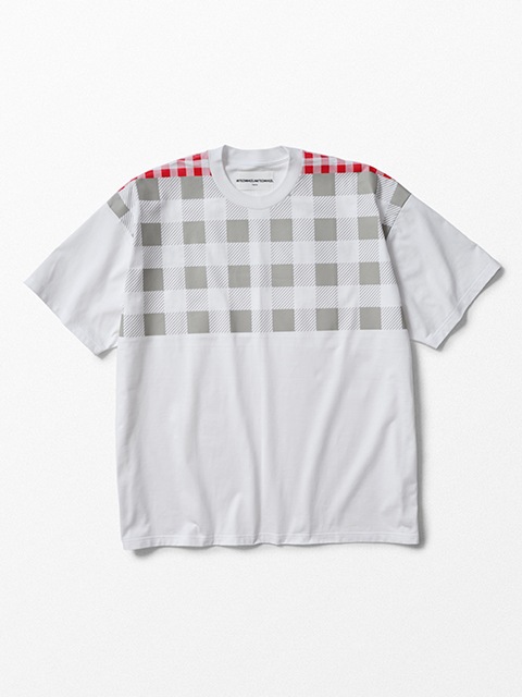 ■ブロックチェックデザインのTシャツ。フロント上部に配置された配色のブロックチェックがポイントの一枚です。バックにはブランドロゴをデザイン。チェック柄はWHIZLIMITEDのアーカイブから採用しアップデート。ブランドらしさが表現されたTシャツとなっています。