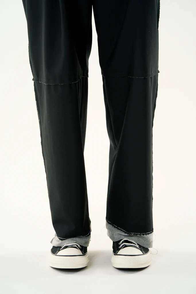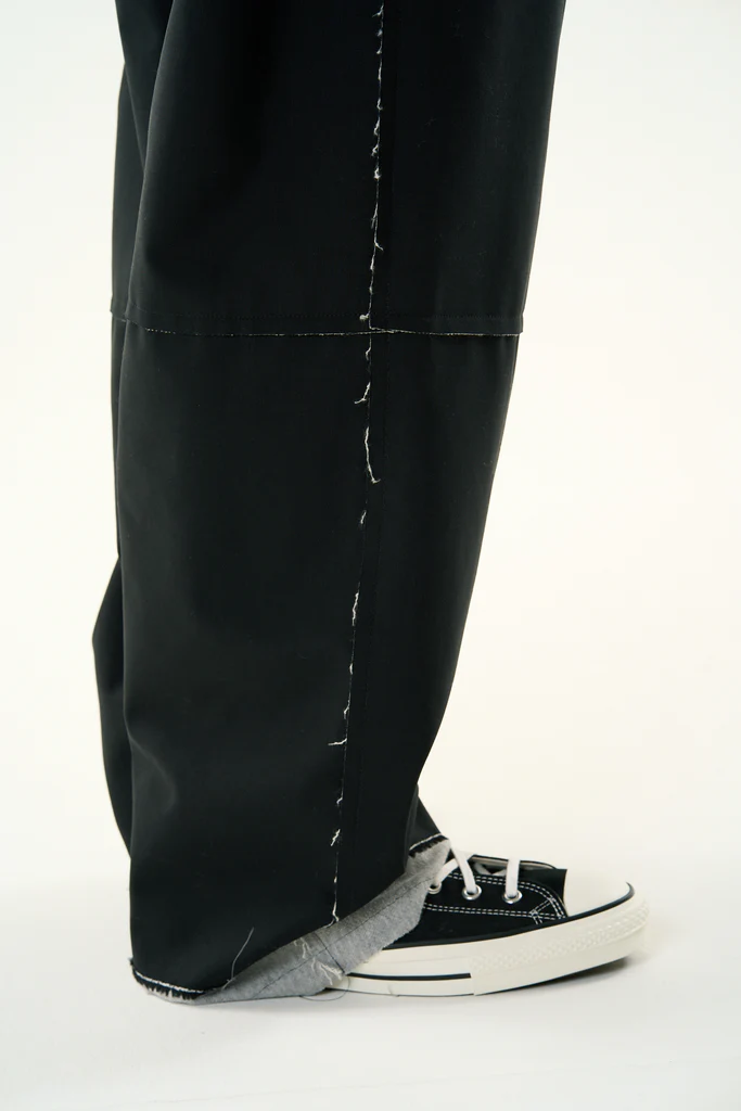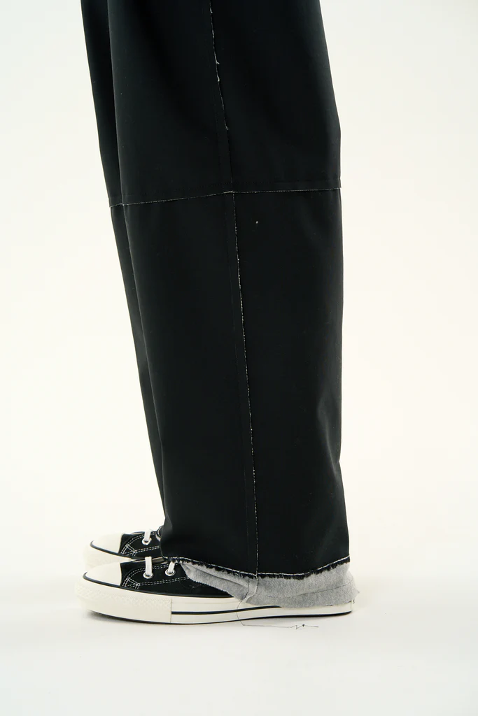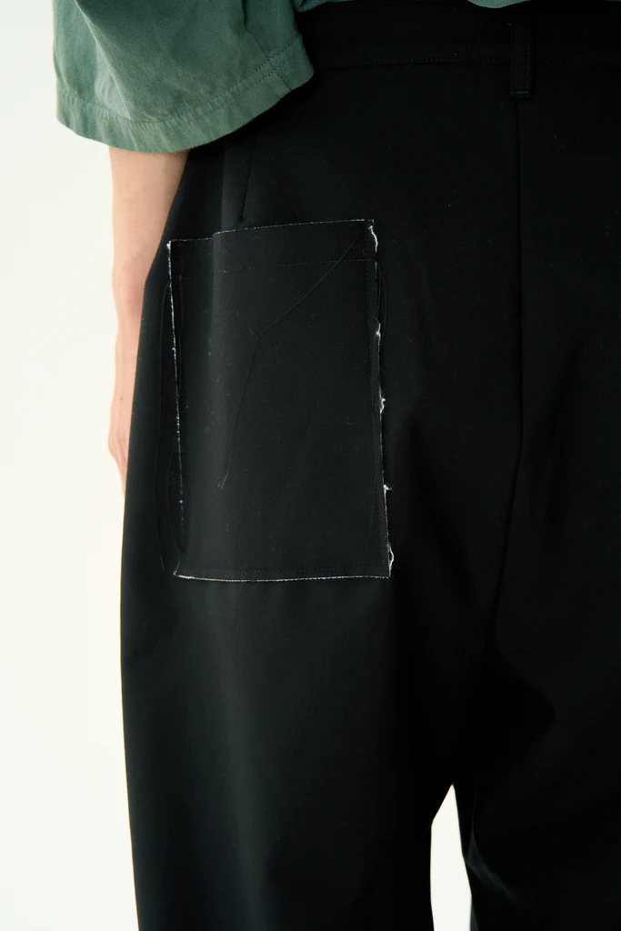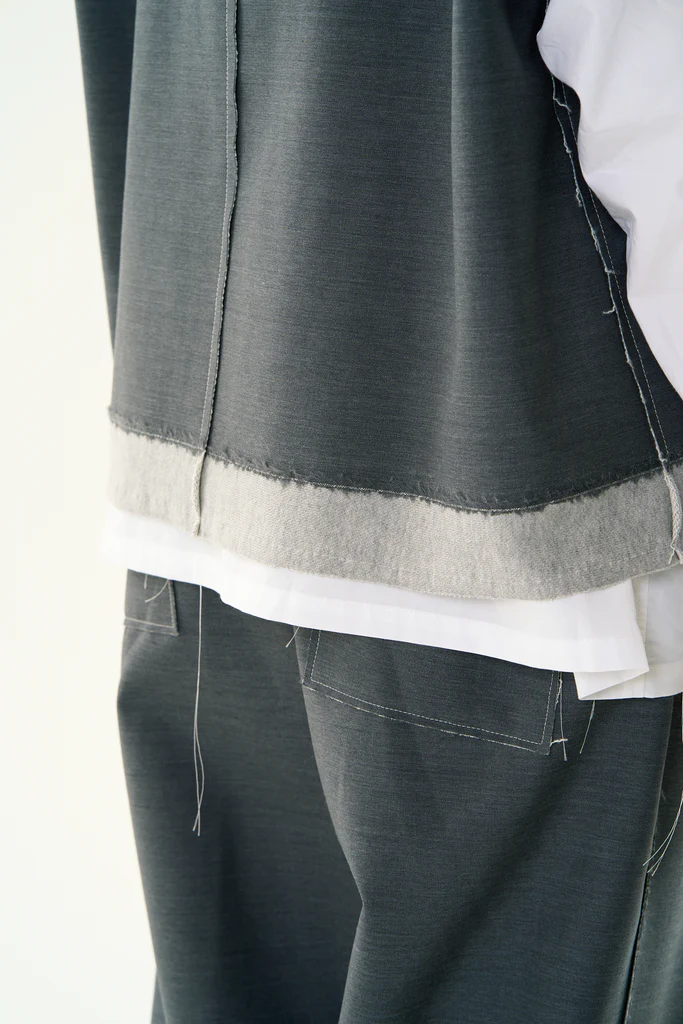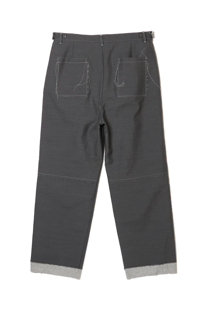 サマーウールと薄手の裏毛をボンディングしたタックトラウザーズ。サマーウールと裏毛を重ねることで裏地要らずで着心地が良くフォーマルをカジュアルに着こなす事が出来るアイテム。断ち切りデザイン、ホワイトステッチがポイント。