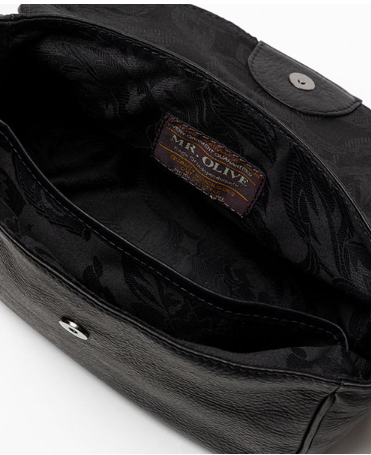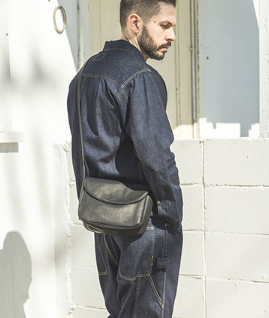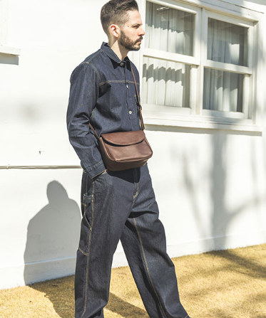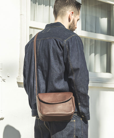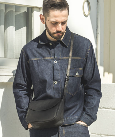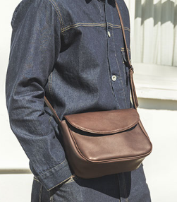Aランクの牛革を使用しソフトな質感に仕上げたレザー。独自の特殊加工によりフッ素を革の繊維に定着させる事で「吸水率約80%低下」を実現。撥水性が高く、染み汚れになりにくい機能が半永久的に維持できるので、雨の日も気にせず使用ことが出来る。フラップ型のコンパクトなニートショルダーバッグ。マチを深く設定しているので、長財布、携帯、350mmペットボトルなど見た目以上の収納力を誇る。内側に仕切りのあるポケットがあり、分別収納可能。男女兼用モデル。