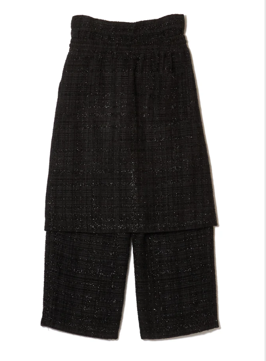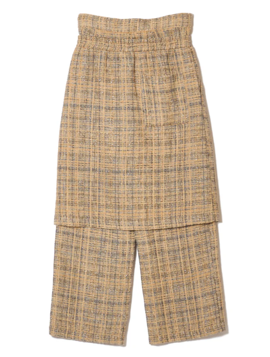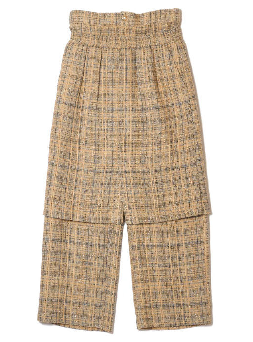 華やかさもありながら大人っぽいシックな配色のラメツイードを使用したレイヤードスラックスパンツ。