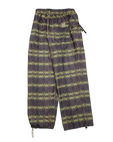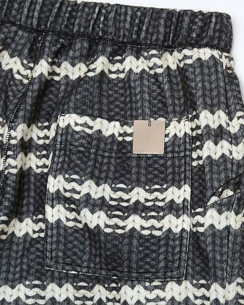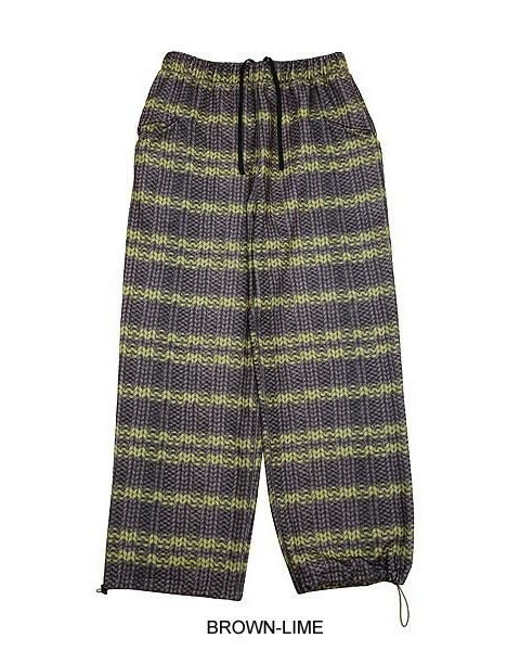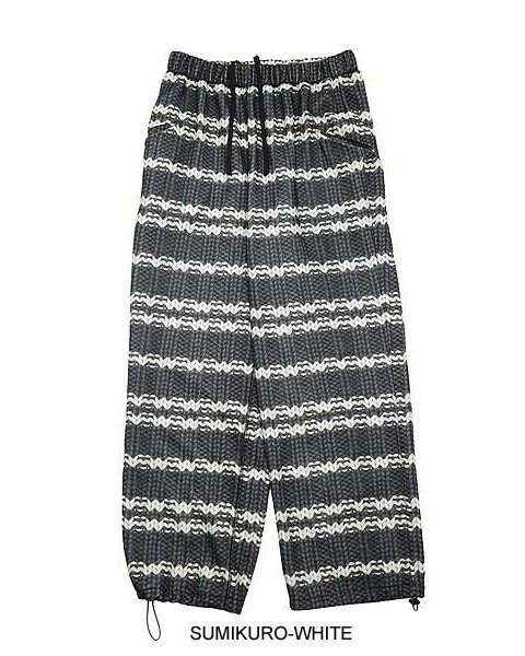 ボーダーニット柄を転写プリントした起毛ニットパンツ。