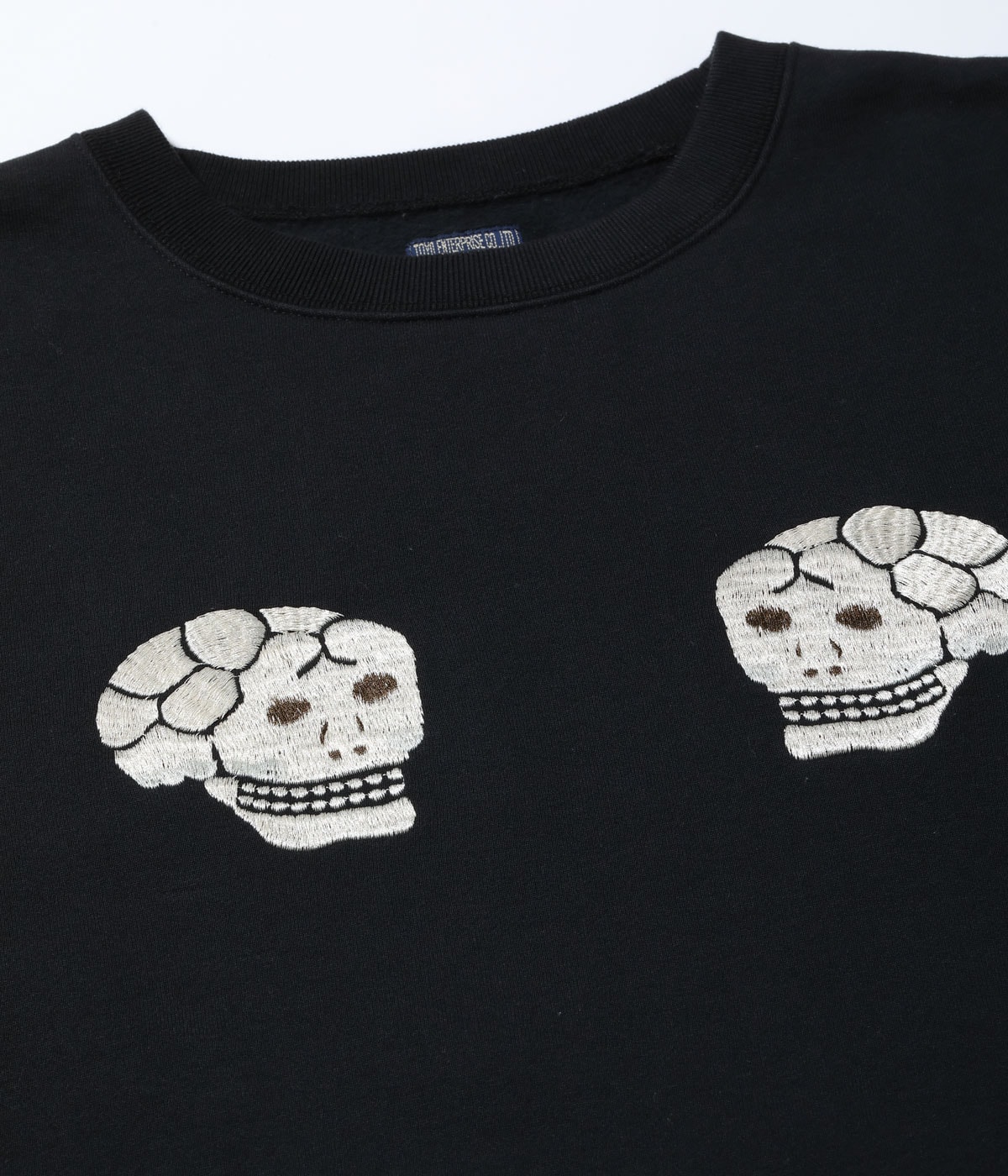 ヴィンテージでは現存する数が極めて少なく、群を抜いて希少価値の高い髑髏柄を今季はスウェットシャツでリリース。