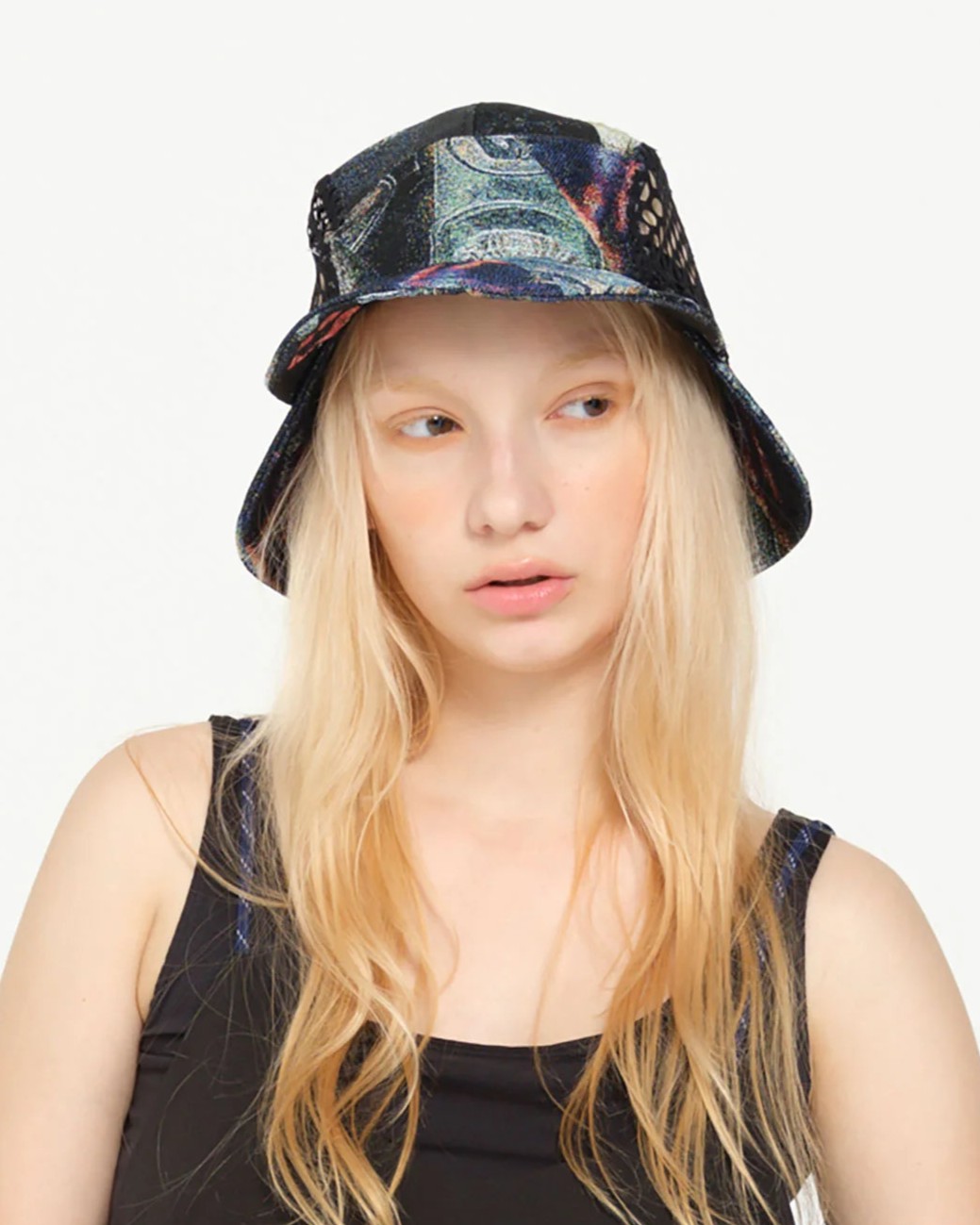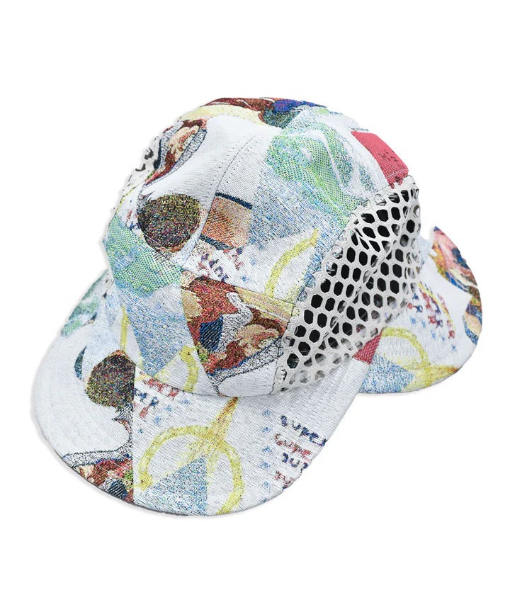 音楽ジャンルを超越したミュージシャンのアートワークをコラージュして織り上げた精緻なジャカード素材を使用した2WAY CAPです。