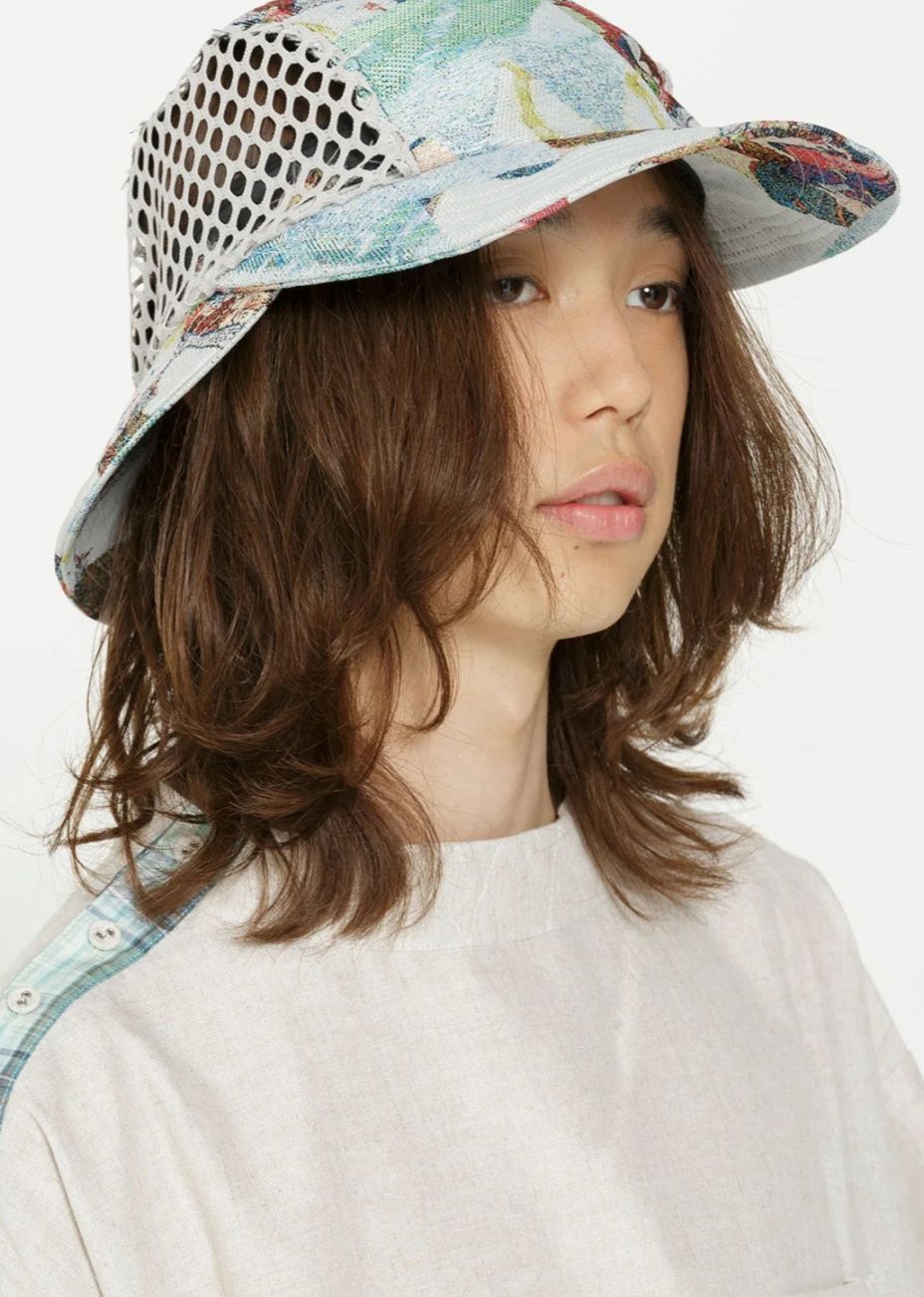 音楽ジャンルを超越したミュージシャンのアートワークをコラージュして織り上げた精緻なジャカード素材を使用した2WAY CAPです。