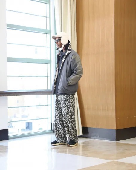 表側を起毛状とし、ニット特有の柔らかな雰囲気と個性が合わ さったスペシャルな一本。裾をドローコードで絞る事ができます。